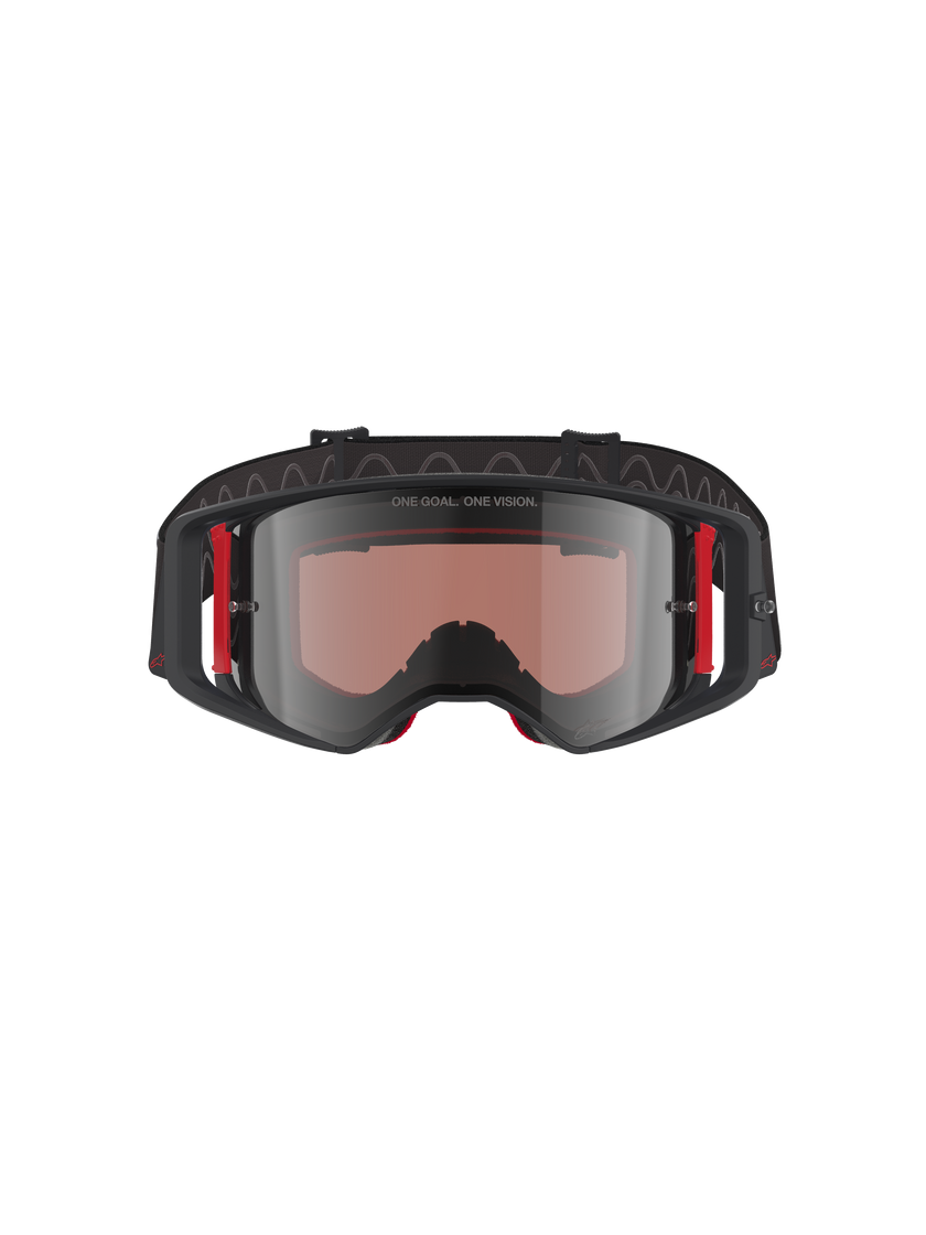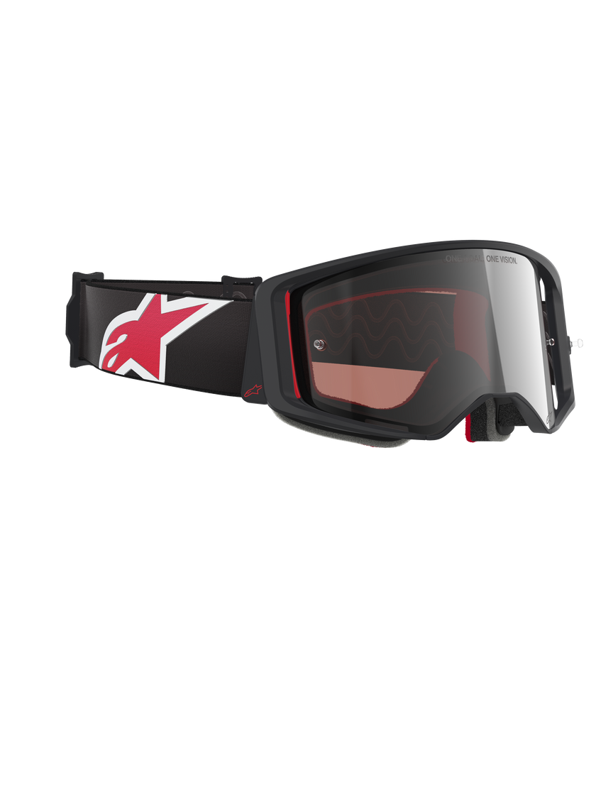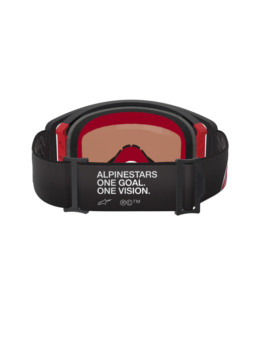 - Il campo visivo espansivo degli occhiali Supertech offre una visione periferica eccezionale, progettata per integrarsi perfettamente con il sistema ULTRA-WIDE 48mm Roll-Off di Alpinestars.